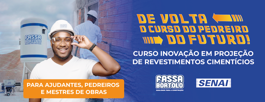 Uma parceria entre a FIEMG, o SENAI e a Fassa Bortolo, fabricante de argamassas e rejuntes, foi firmada para capacitar, gratuitamente, os profissionais da construção civil, sendo eles mestres de obras, pedreiros e ajudantes, na projeção de revestimentos cimentícios.