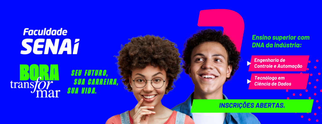 A Faculdade SENAI de Minas Gerais está com inscrições abertas para o processo seletivo do segundo semestre de 2025. São oferecidos dois cursos de graduação na modalidade de ensino híbrido: o Bacharelado em Engenharia de Controle e Automação e o Tecnólogo em Ciência de Dados. As inscrições podem ser feitas gratuitamente até o dia 4 de julho no site faculdadesenaimg.fiemg.com.br.