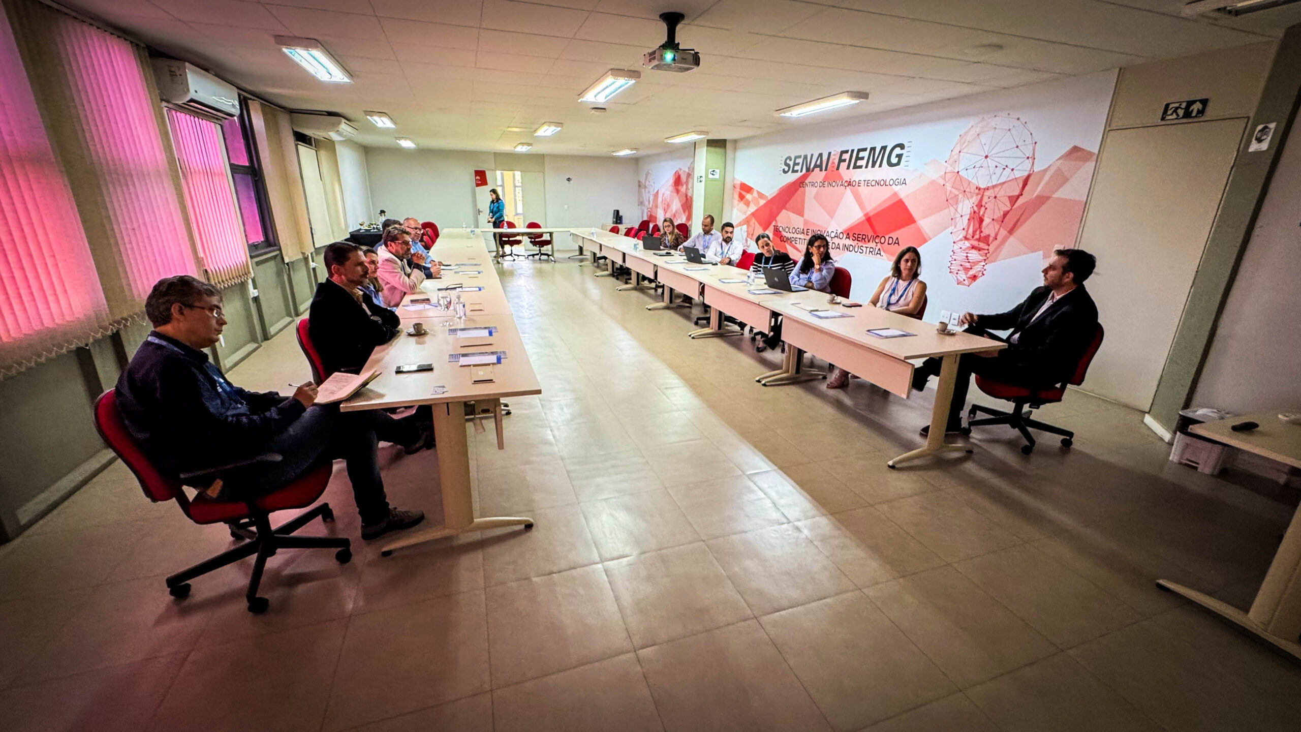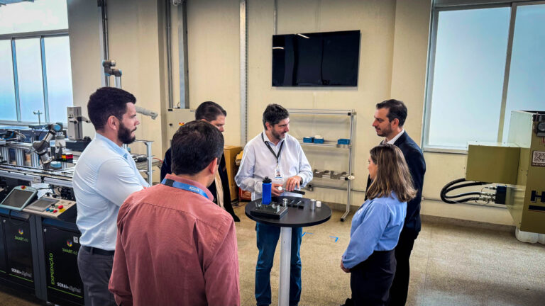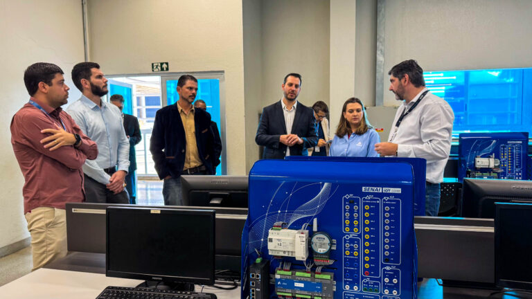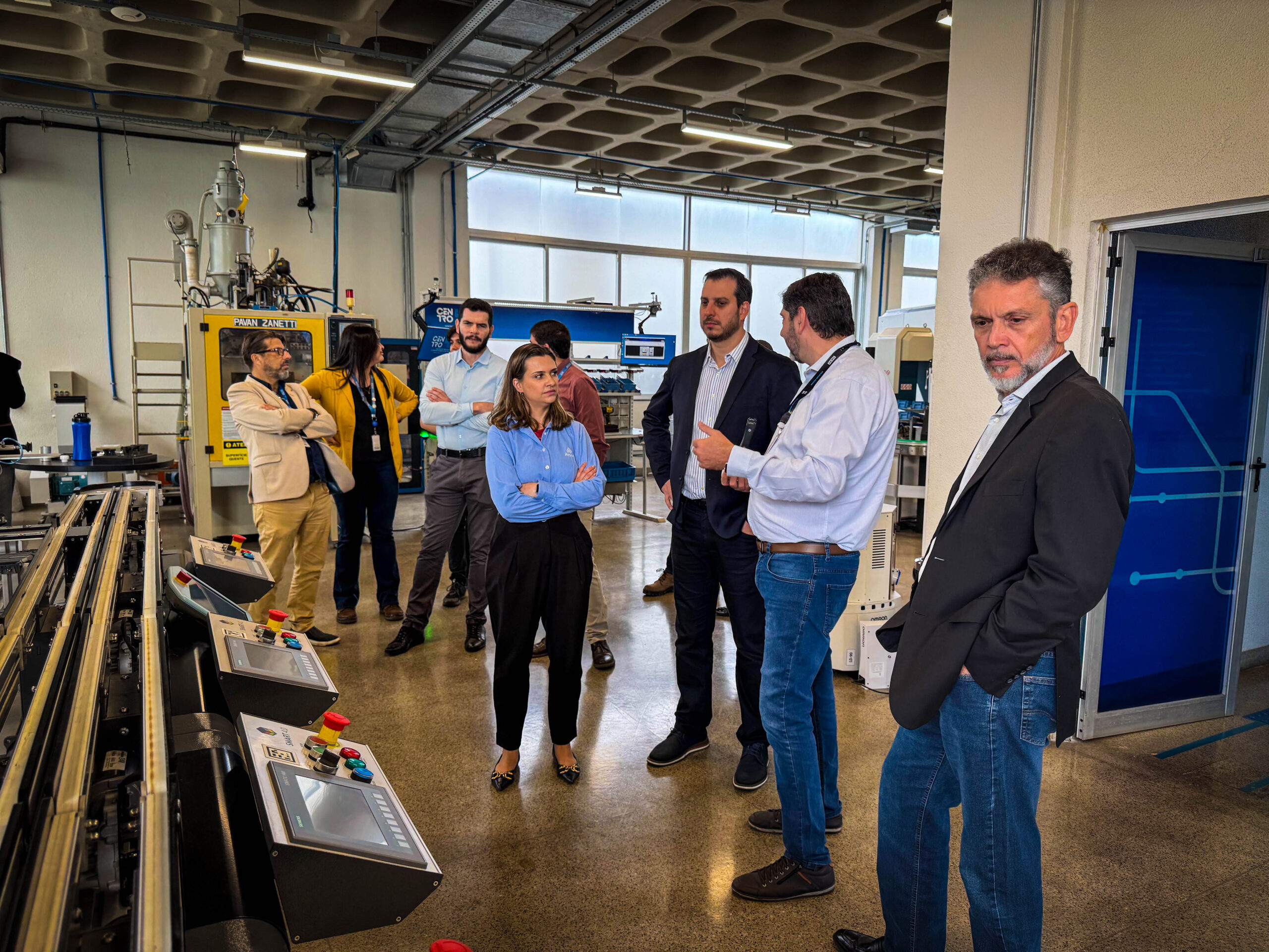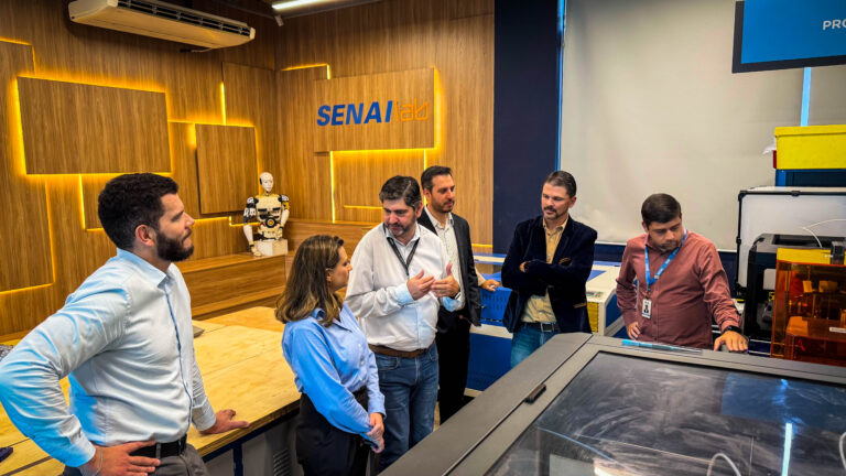 A agenda teve início no Centro de Treinamento e Desenvolvimento para a Indústria 4.0, em Contagem, onde os visitantes foram recepcionados por Christiano Leal, superintendente do SENAI, e pelos gestores Ricardo Aloysio e Silva e Guilherme Braga Fiorino. O espaço é referência nacional na formação de profissionais para tecnologias emergentes, com foco em automação, digitalização e manufatura avançada.