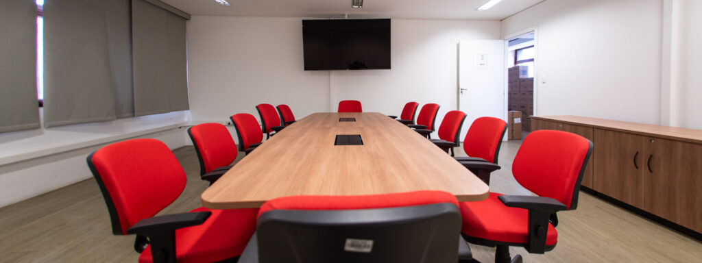 Sala para reuniões localizada no Centro Cultural SESIMINAS BH. Toda equipada e com recursos para transmissões via internet.